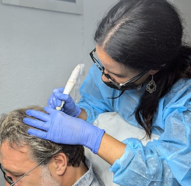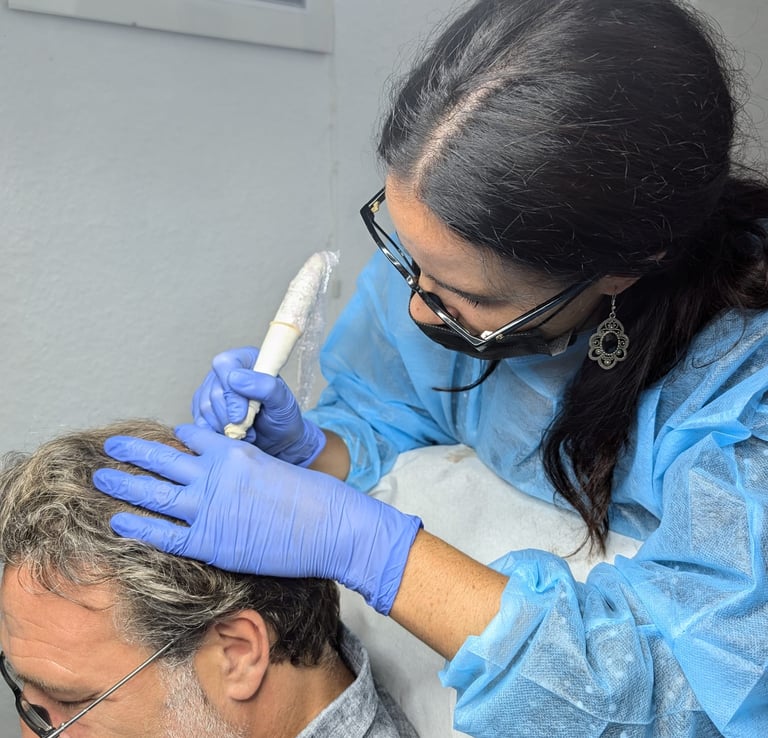 La tricopigmentation est une technique innovante pour redonner l’illusion d’une densité capillaire naturelle. Grâce à des micro-points pigmentaires dans le cuir chevelu, elle camoufle la calvitie et apporte du volume sur les zones clairsemées.